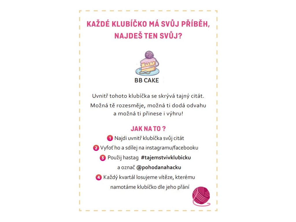 Bezpečnostní upozornění: Přestože klubíčko vypadá sladce - není určeno k jídlu ani ke hraní. Je určeno jen pro tvořivé duše s háčkem nebo jehlicemi v ruce.