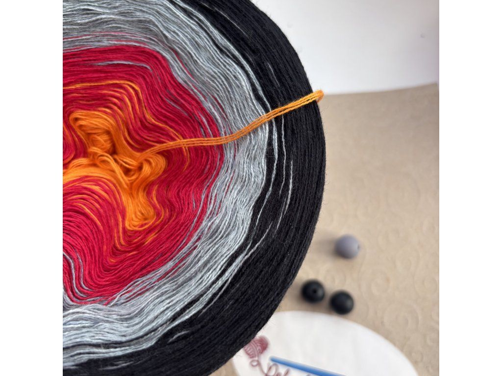 Klubíčko obsahuje barvy: odstíny oranžové, červené, šedé a černé