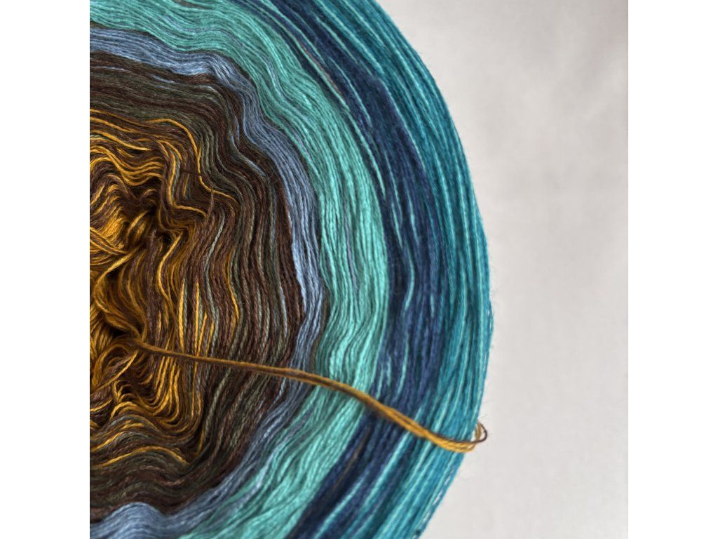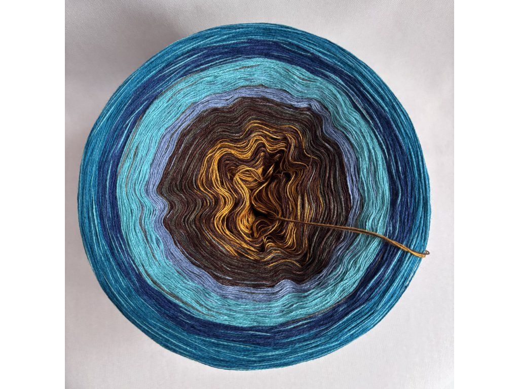 Klubíčko obsahuje barvy: odstíny curry, hnědé, modré a tyrkysové