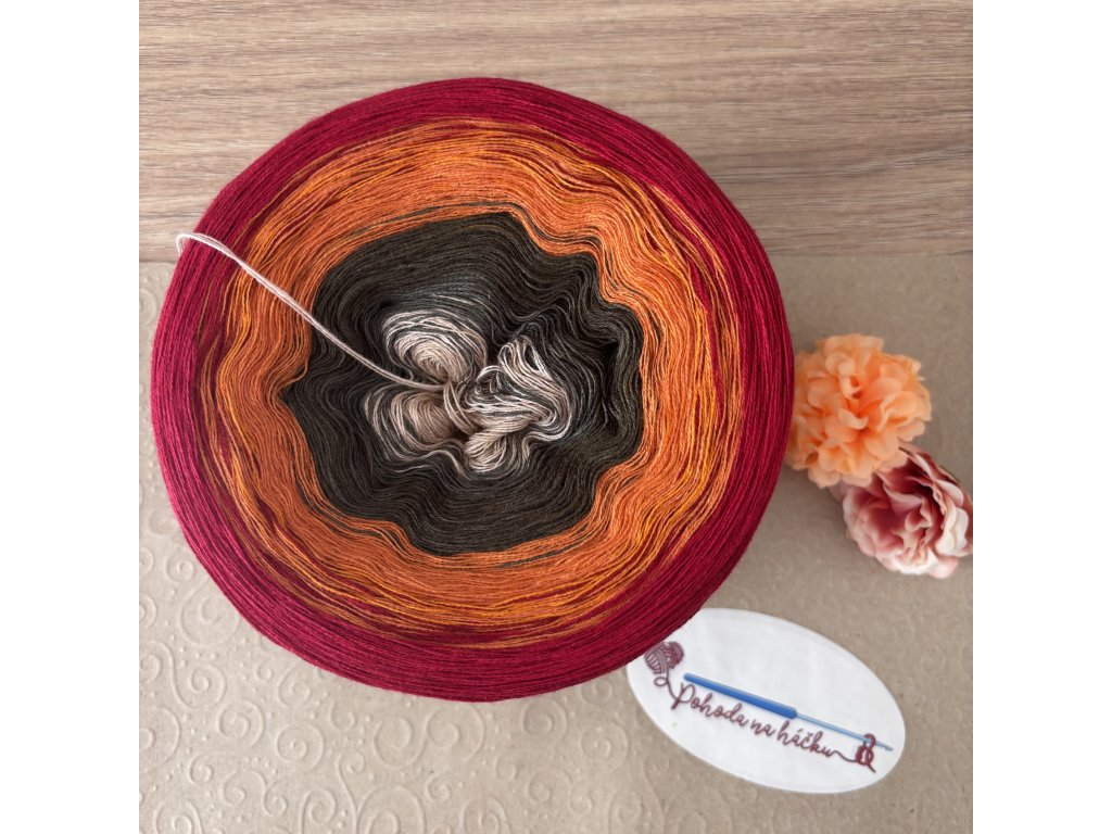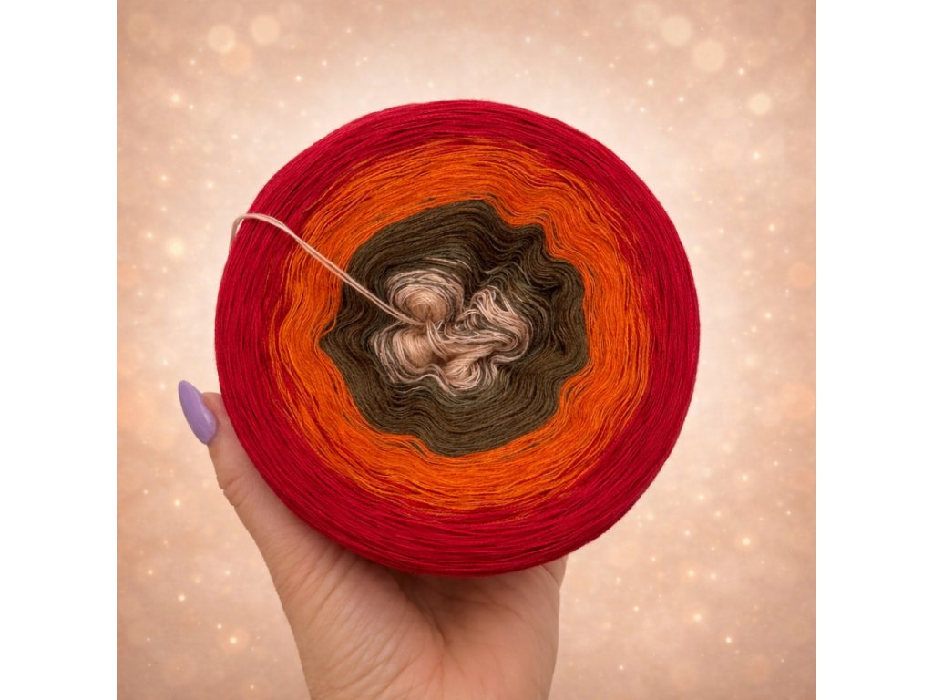 - jedná se o postupný barevný návin klubíčka, tzn. že každá další barva je o kousek delší než předešlá, proto doporučujeme klubíčko odmotávat zevnitř