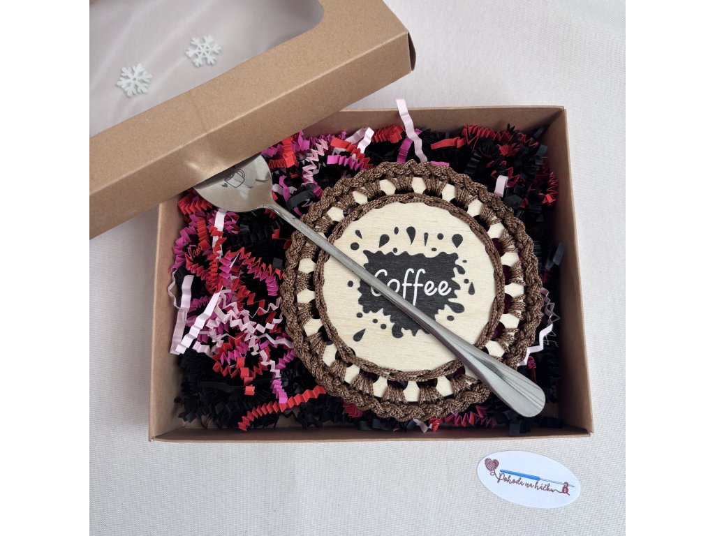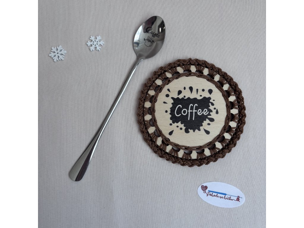 Ručně obháčkovaný dřevěný podtácek : není nic krásnějšího, než si po náročném dni vychutnat šálek kávy, který odložíš na tento nádherný podtácek.