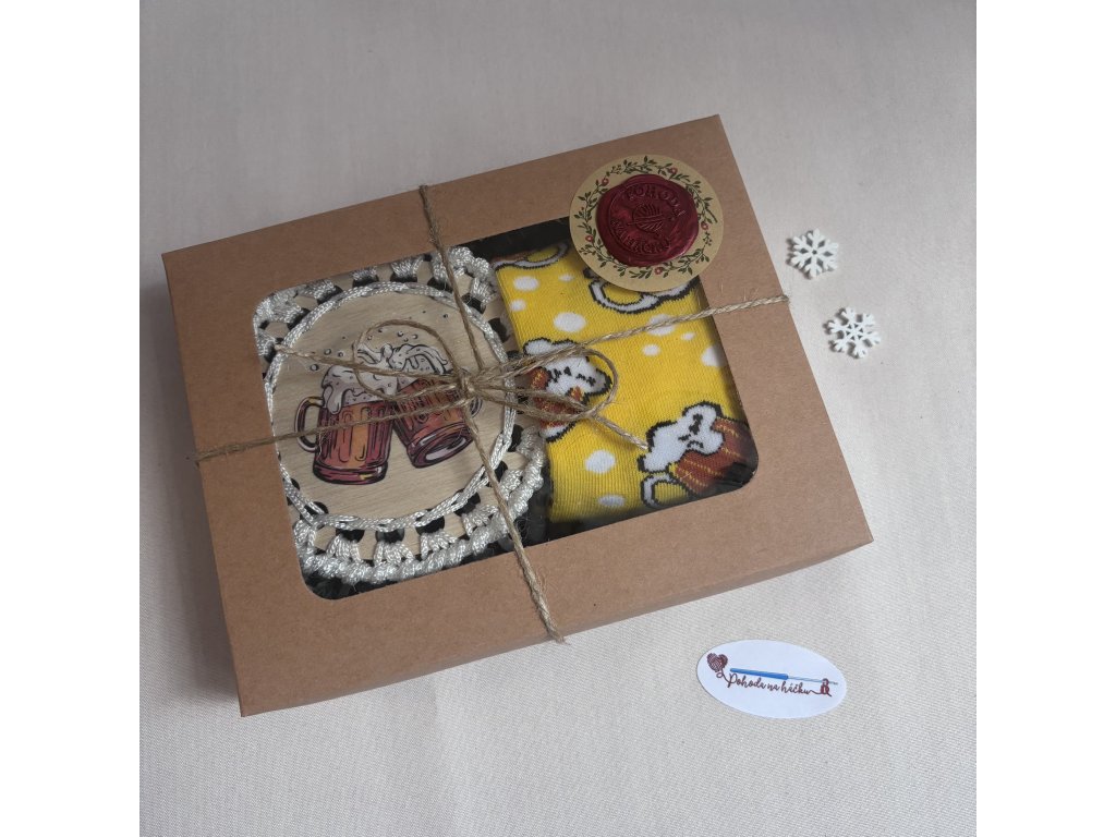 - Kvalita: Podtácek i ponožky jsou pečlivě zabaleny v dárkové krabičce.