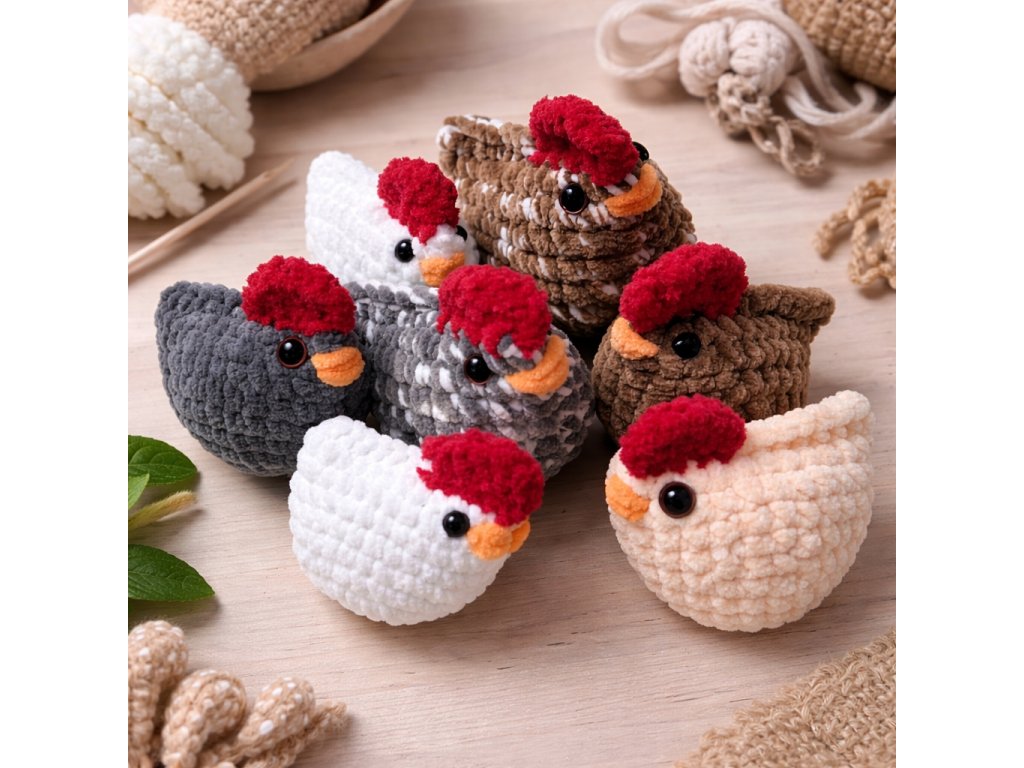 - Kvalitní barevné příze: K uháčkování roztomilých slepiček