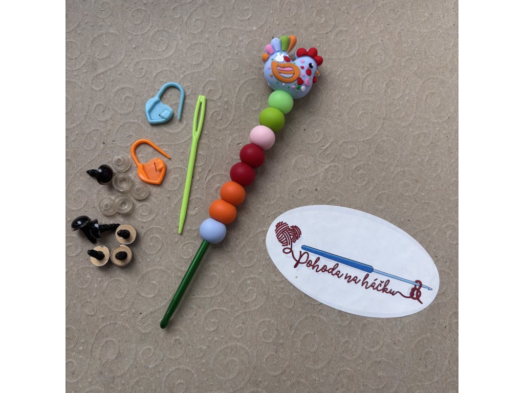 - Designový hliníkový háček se silikonovými korálky pro lepší úchop a s krásným motivem ( a pozor - jeden korálek svítí ve tmě)