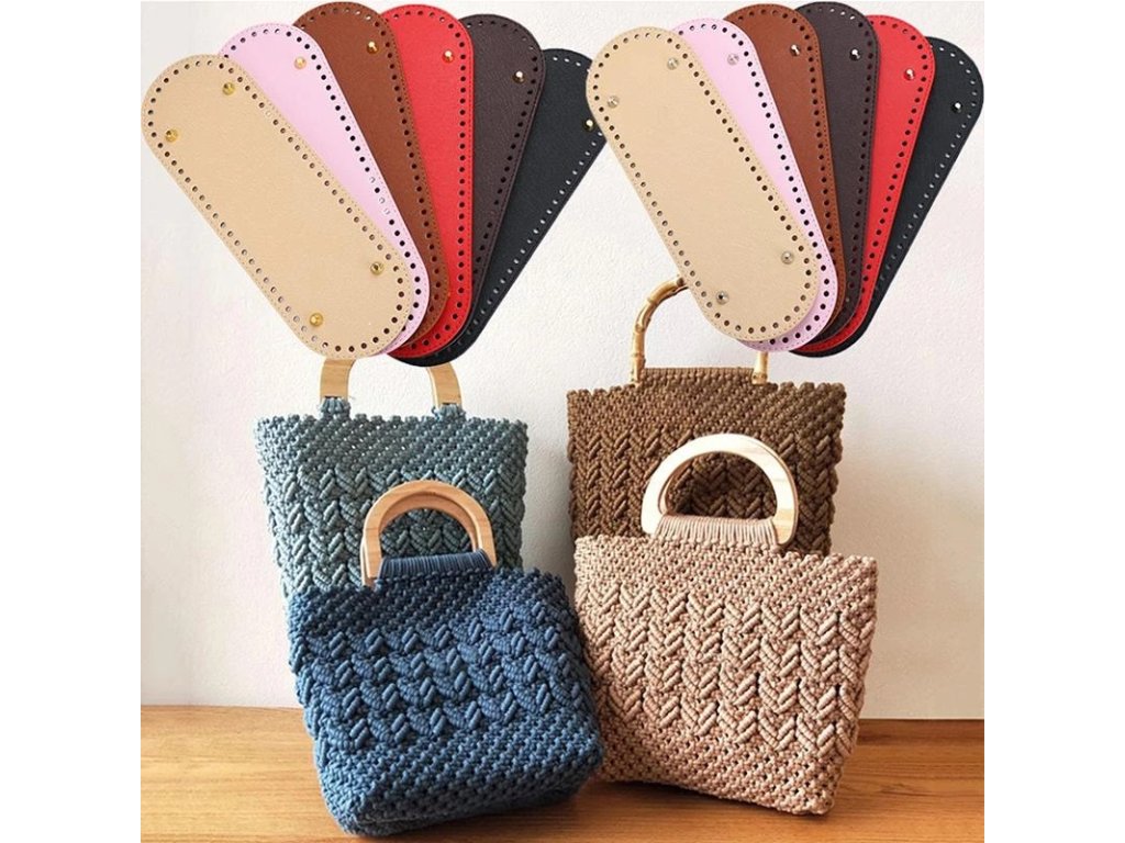 Dno je vyrobeno z eko kůže a je vhodné na výrobu háčkovaných kabelek např. ze šnůrkových přízí, které také najdete v našem sortimentu.