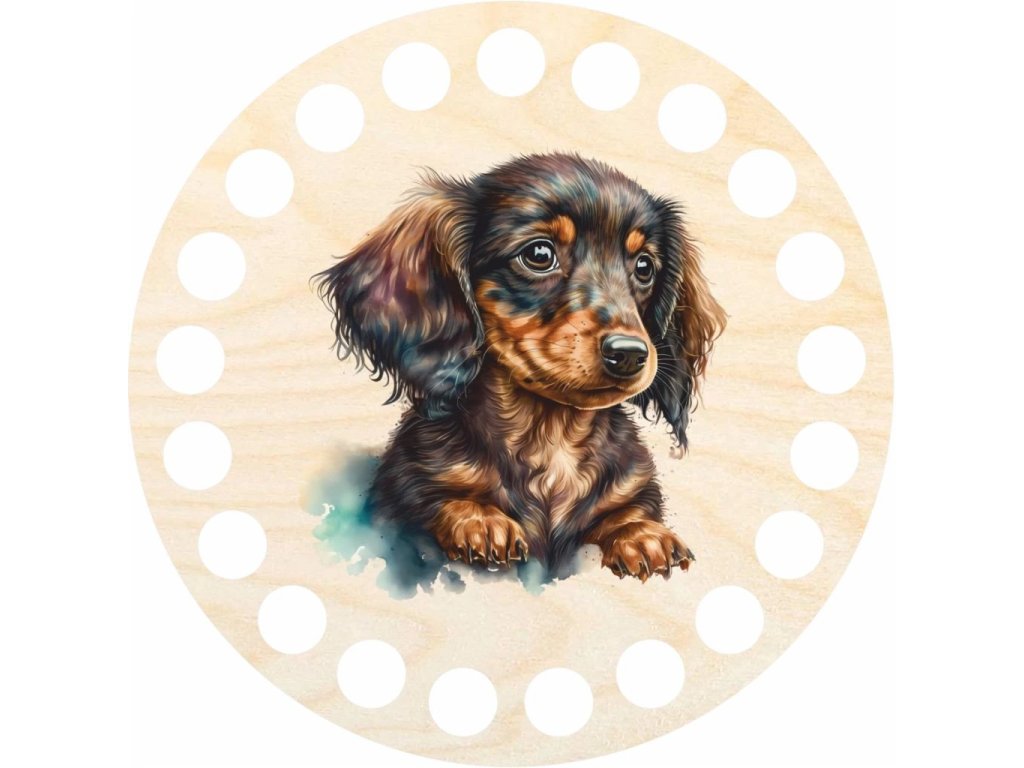 Dřevěný podtácek nebo víko na košík - jezevčík
