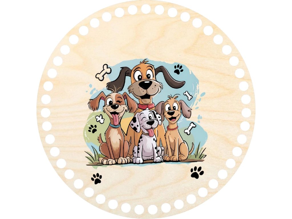 Dřevěný podtácek nebo víko na košík - psí smečka