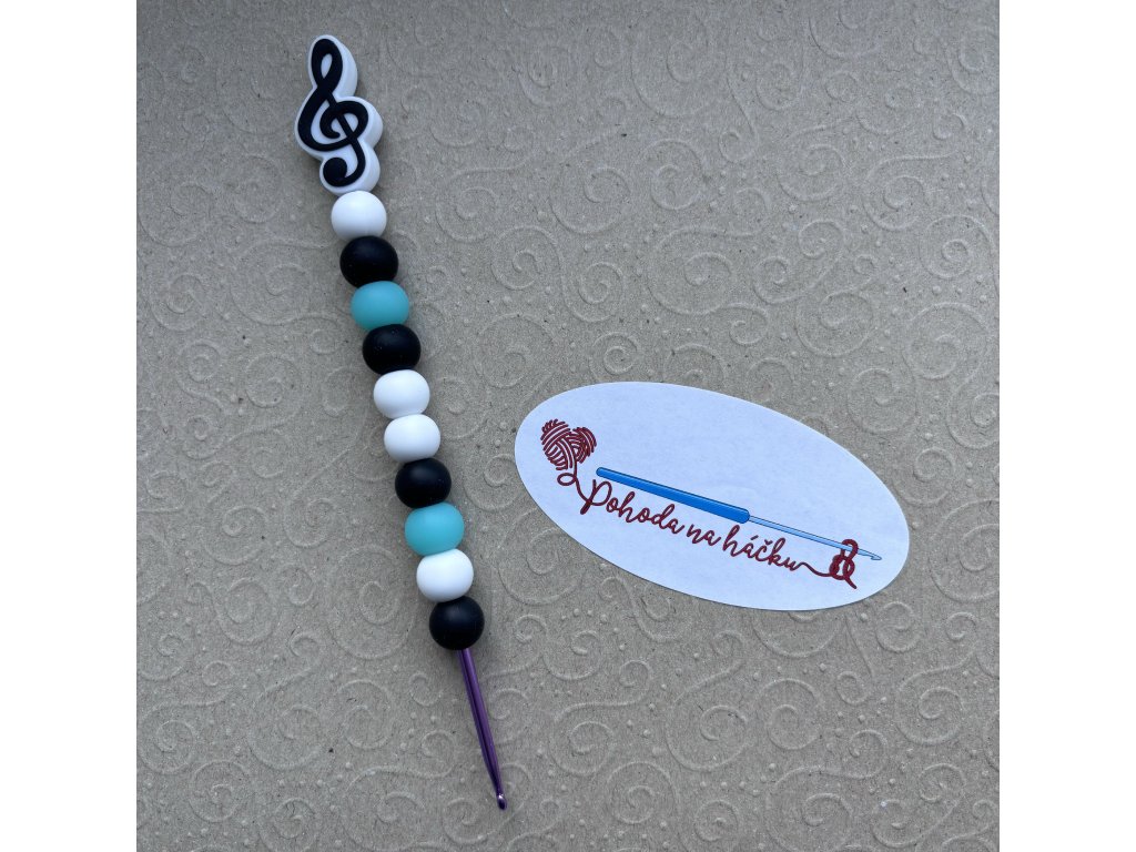 Přidejte ke svému háčkování hudební kouzlo s naším hliníkovým háčkem zdobeným silikonovými korálky a krásným motivem houslového klíče!