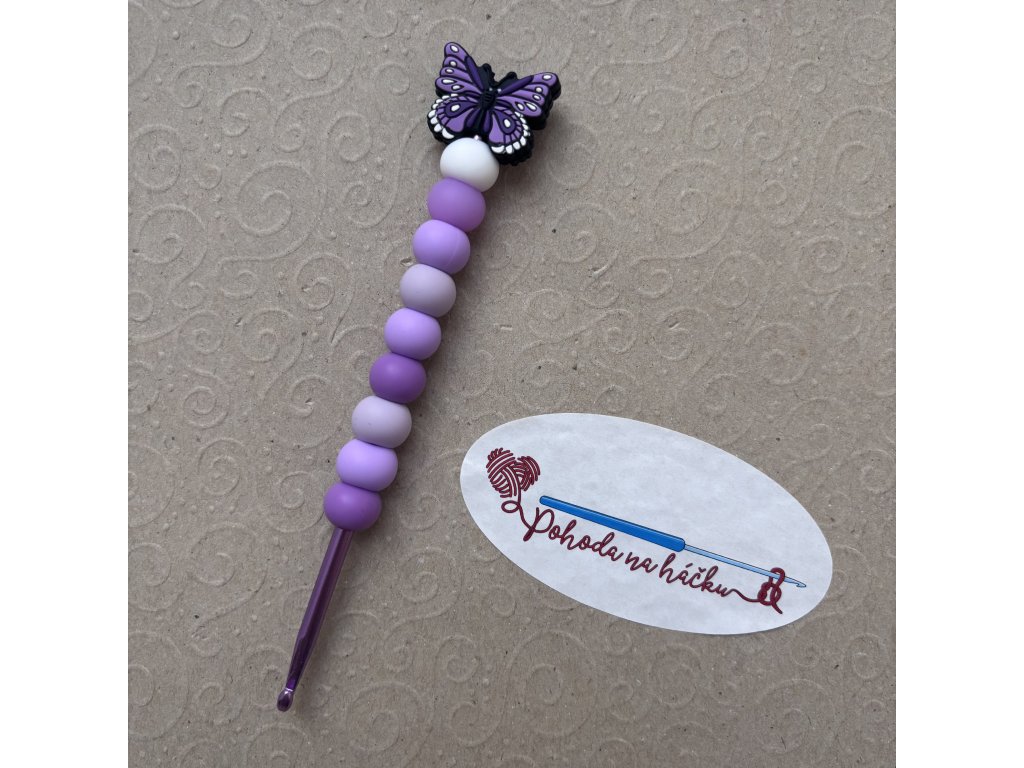 Přidejte k vašemu háčkování špetku exotiky s naším hliníkovým háčkem zdobeným silikonovými korálky a motivem motýla!