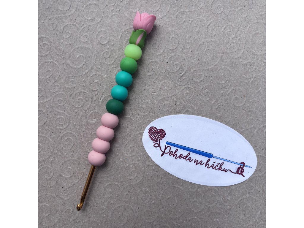 Náš hliníkový háček ozdobený silikonovými korálky je nejen krásný a pohodlný do ruky, ale také ukrývá malé kouzlo – jeden z korálků svítí ve tmě!