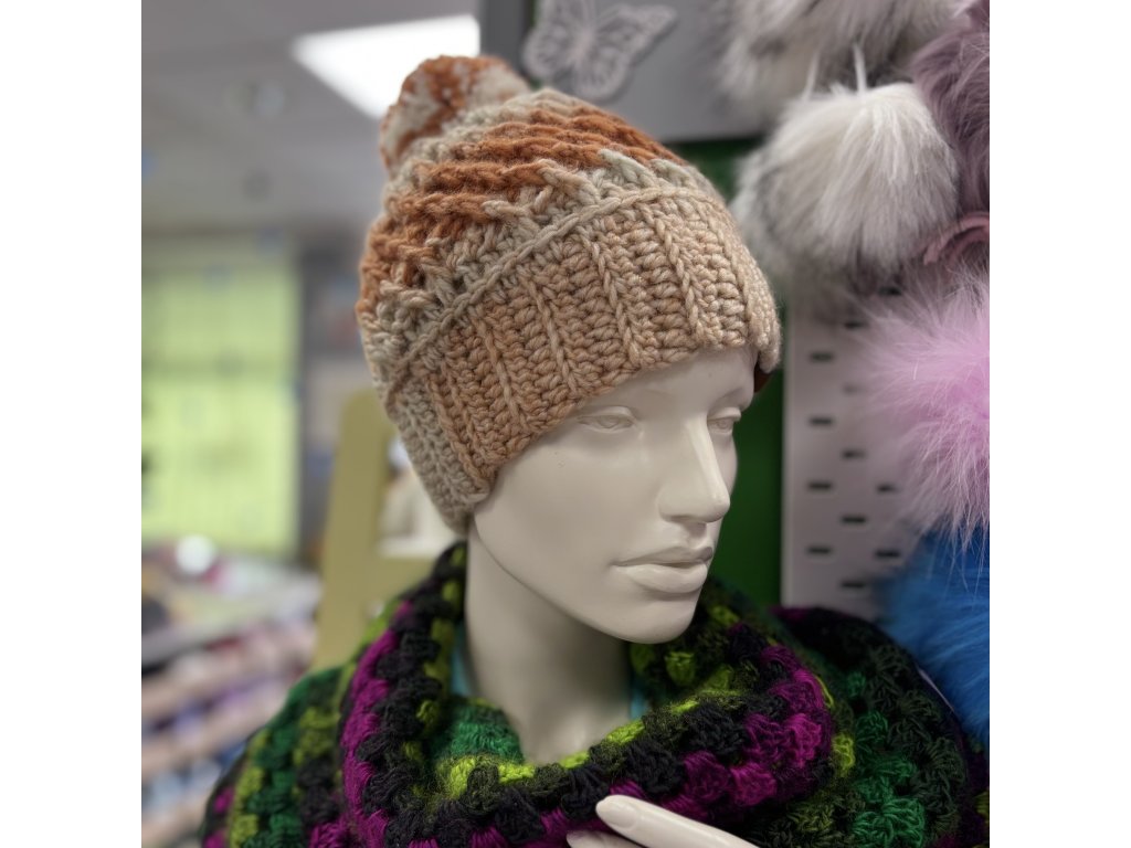 Ručně háčkovaná čepice z naší dílny Pohoda na háčku v Táboře z kvalitní příze s obsahem vlny je ta správná volba!