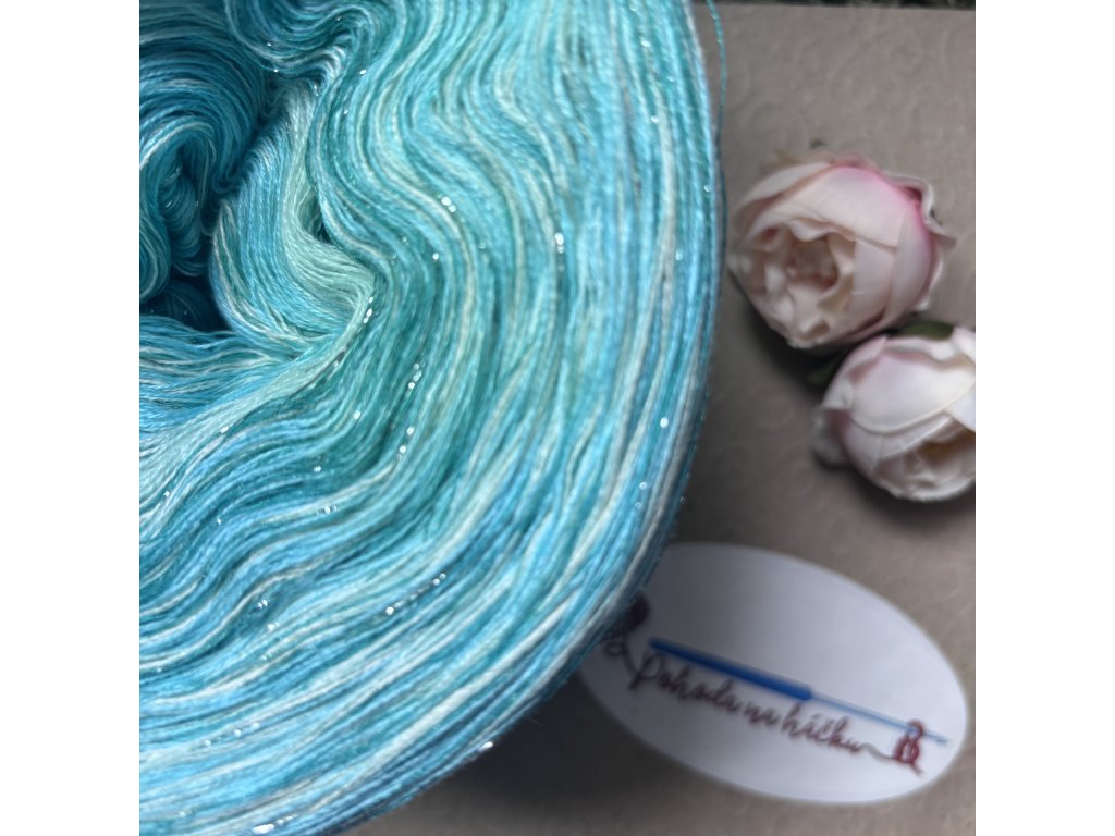 - klubíčko dále obsahuje jednu lesklou lunární nitku v duhové barvě, která je velmi jemná a neškrábe.