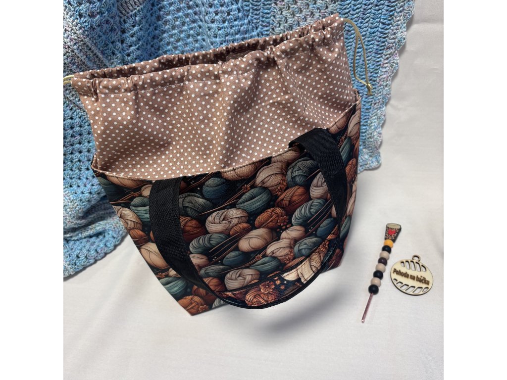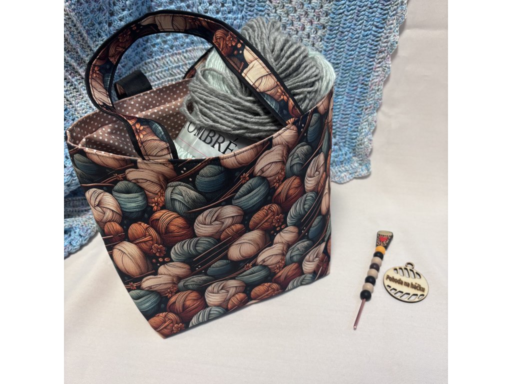 Přesně taková je naše ručně ušitá látková taška s motivy které ocení každá pletařka a háčkařka.