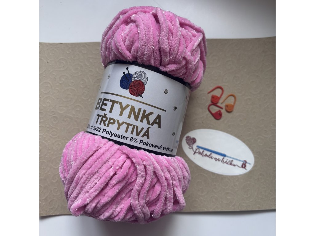 Struktura příze: Jemná, sametová povrchová úprava, obohacena o lesk a třpyt