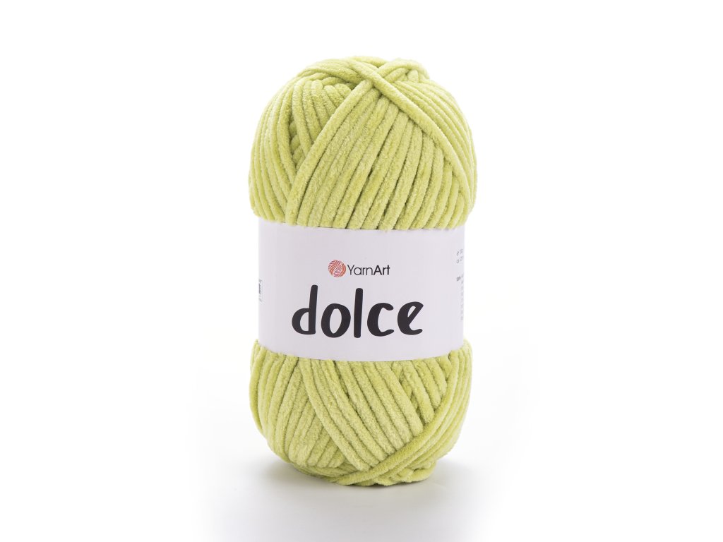 Každé klubko YarnArt Dolce má návin 120 metrů a váží 100 gramů. Doporučujeme použít jehlice nebo háček velikosti 4,5 nebo 5mm.