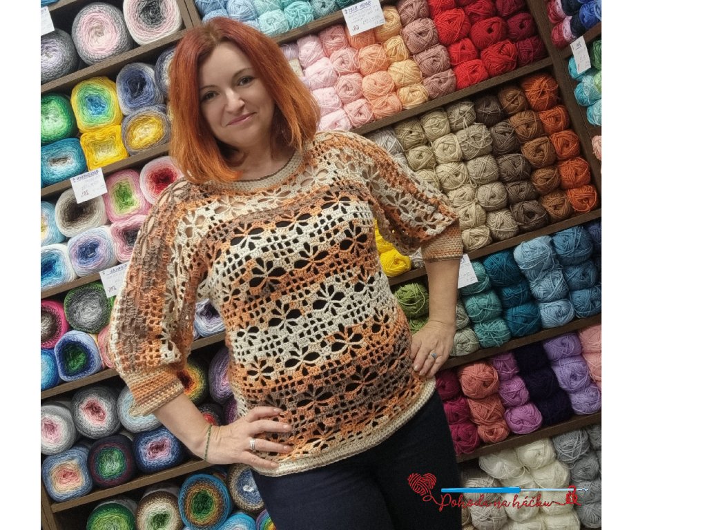 Svetřík na fotce: velikost 40/42 - spotřeba 370g, háčkováno háčkem 4,5.