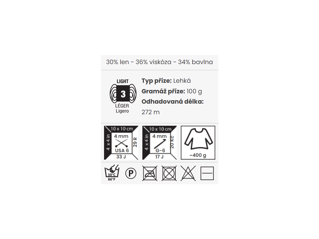 | Složení: | 30% Len, 34% Bavlna, 36% Viskóza |