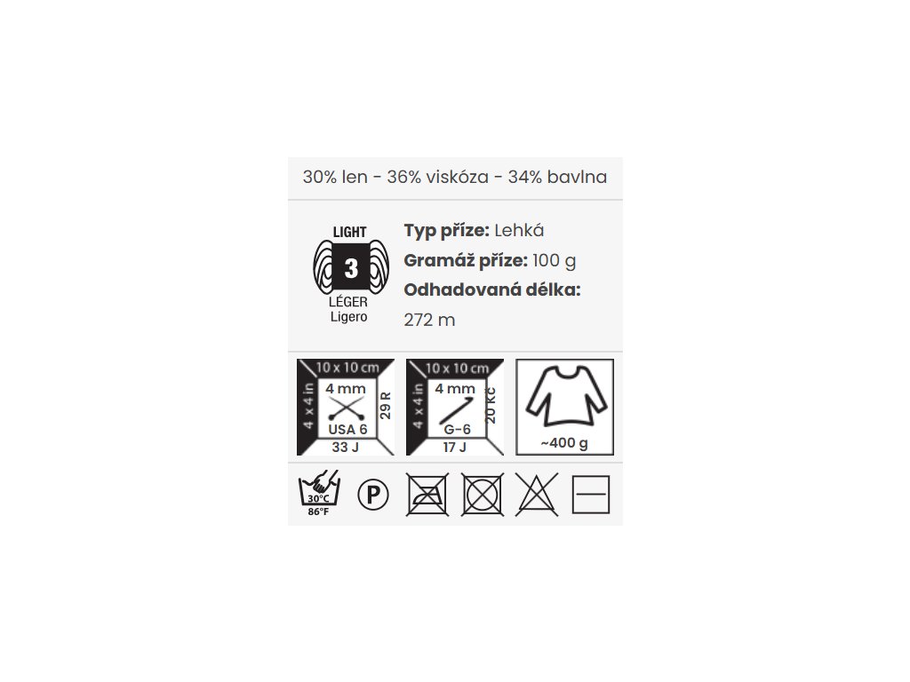 | Složení: | 30% Len, 34% Bavlna, 36% Viskóza |