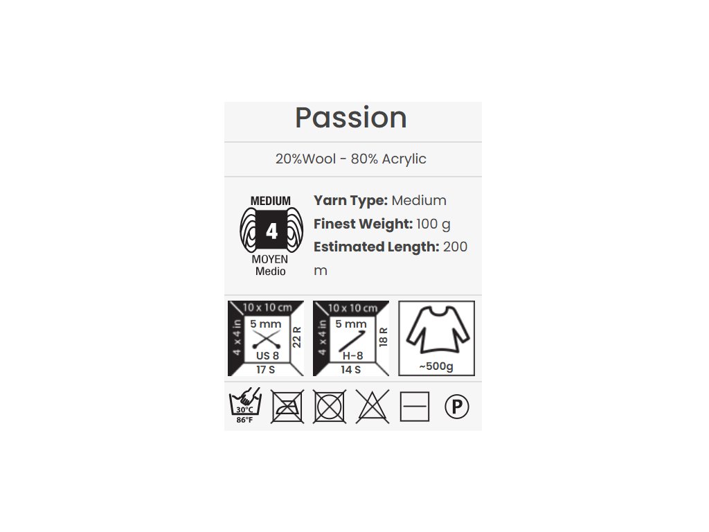 Co se týče barevného spektra, Passion nabízí širokou škálu odstínů, od zářivých až po neutrální tóny. Barvy jsou živé a bohaté, což dodává vašim výrobkům nádherný a elegantní vzhled. Bez ohledu na to, zda vytváříte šály, čepice, čelenky, svetry, vesty nebo útulné přehozy a deky.