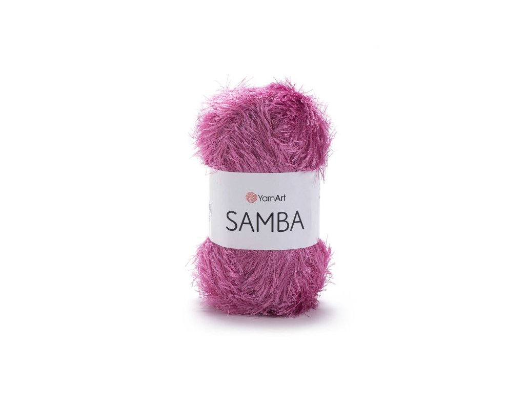Háčkovací i pletací příze Samba je oblíbená střapatá lesklá příze s dlouhým vlasem.