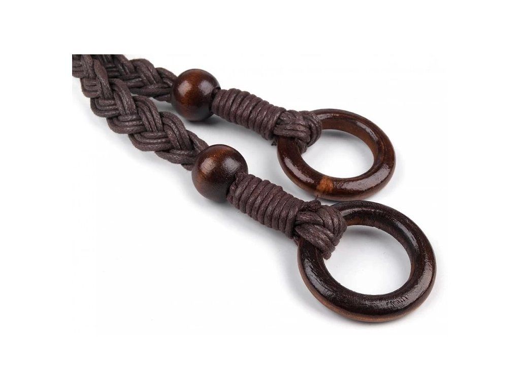 Ucha jsou pletena z textilní voskované šňůry, na obou stranách zakončena korálky a dřevěnými kroužky.